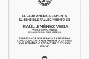 墨西哥美洲俱乐部官方社媒写道:“全体美洲俱乐部成员,对俱乐部前球员劳尔·希门尼斯的父亲劳尔·希门尼斯-维加的去世表示沉痛哀悼。”