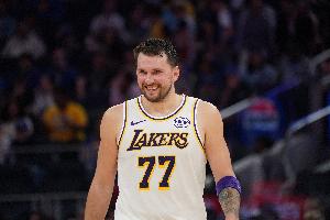 据统计,此役过后,东契奇已为湖人出战77场常规赛,战绩49胜28负,场均30.8分7.8板8.2助。