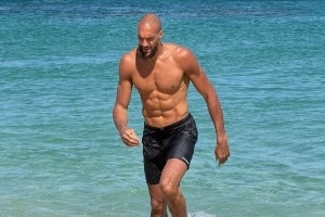 八块腹肌!戈贝尔海边度假放松不忘保持训练